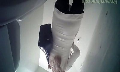 01:33bianco signora in stivali di pelle nera piscia in bagno in camera in cam